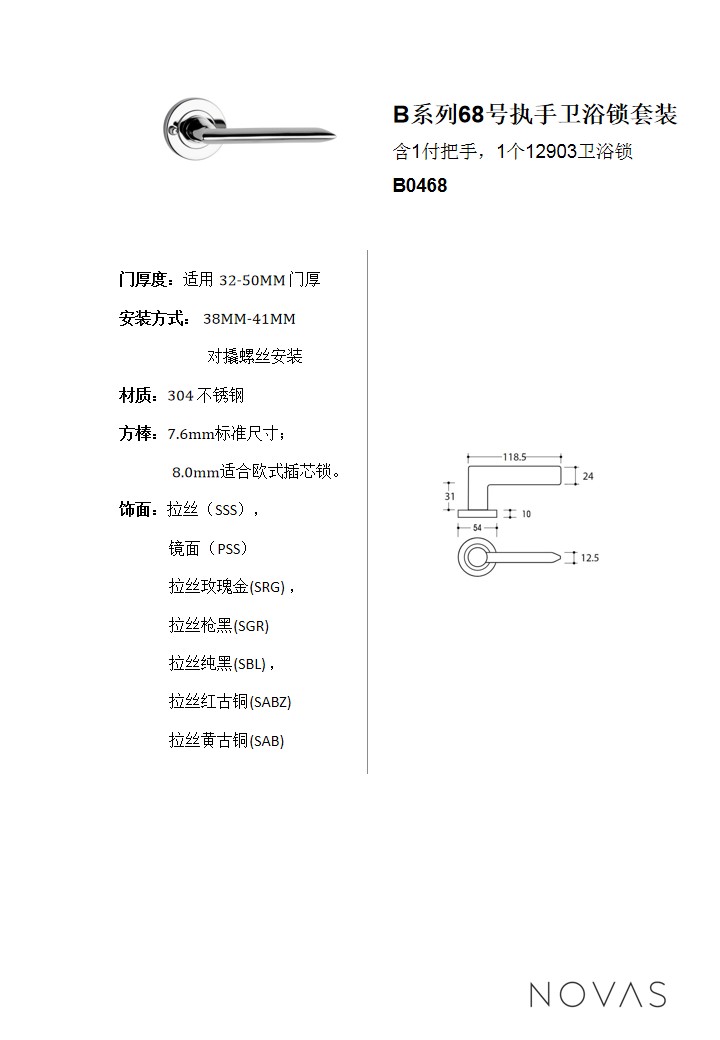 B系列68號執手衛浴鎖套裝
