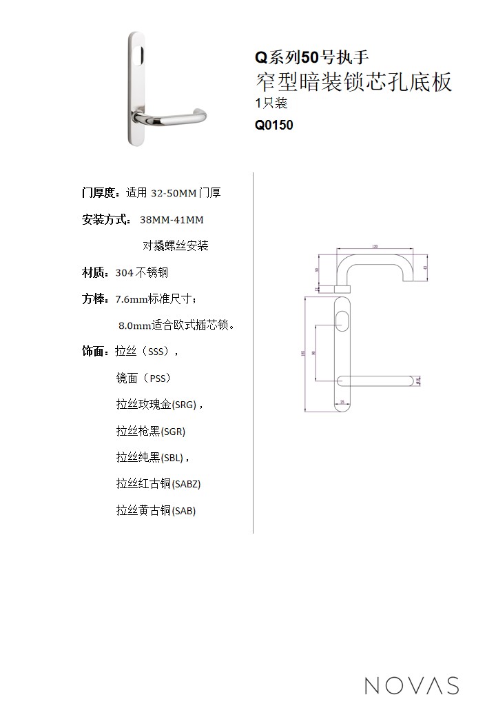 窄型暗裝葉片鎖孔底板1只裝 Q0150