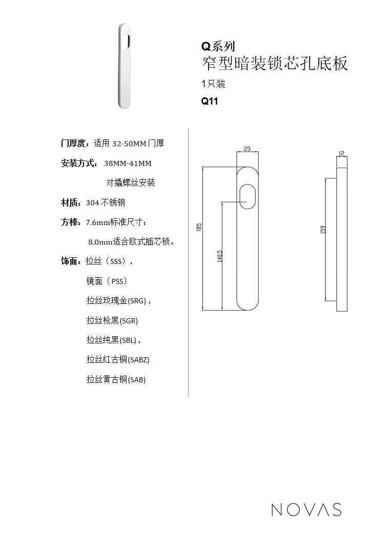 窄型暗裝防盜鎖芯孔底板 1只裝 Q11