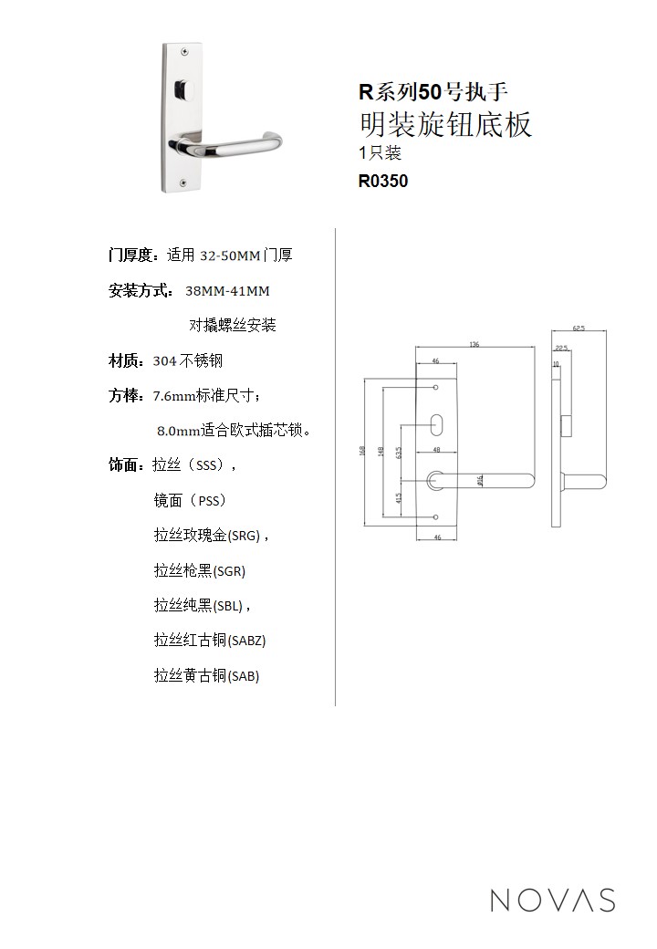 R系列50號執手 明裝旋鈕底板