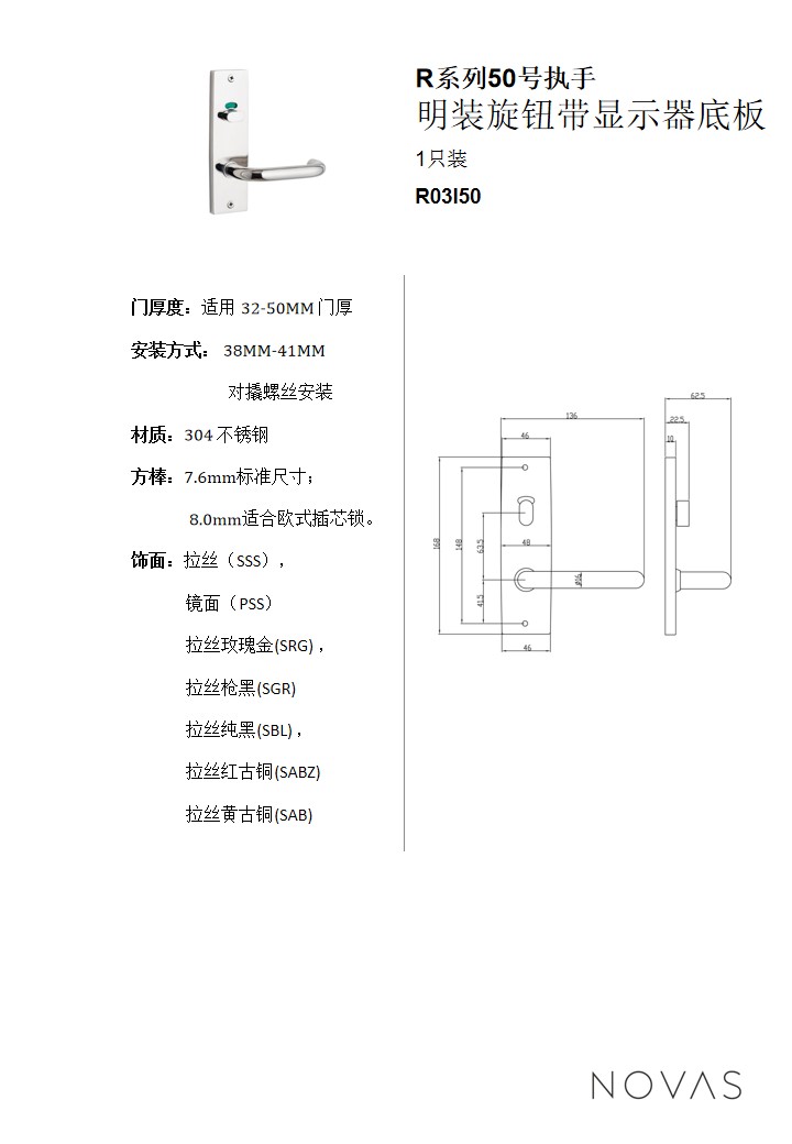 R系列50號執手明裝旋鈕帶顯現器底板