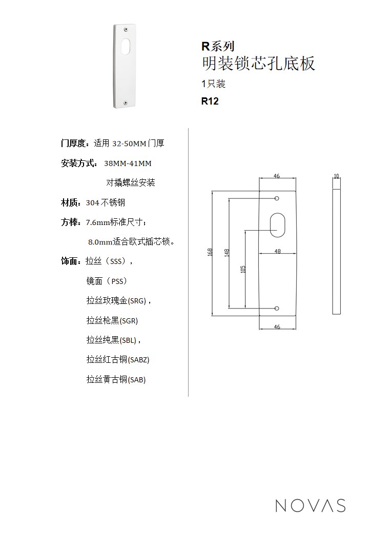 R系列明裝鎖芯孔底板