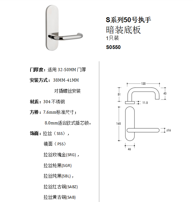 S品類50號執手 暗裝底板