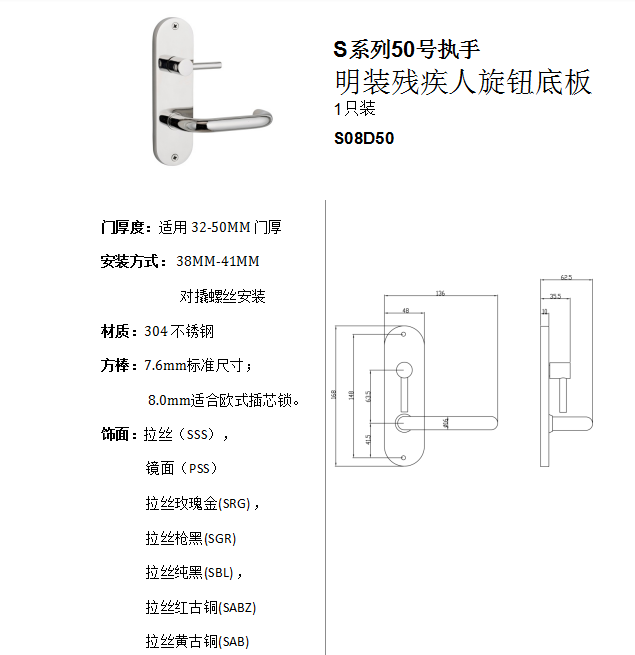 > S系列表50號執手 明裝病殘人轉鈕底板