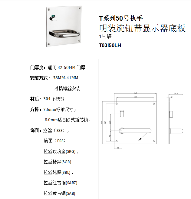 T系列50號執手 明裝旋鈕帶顯現器底板