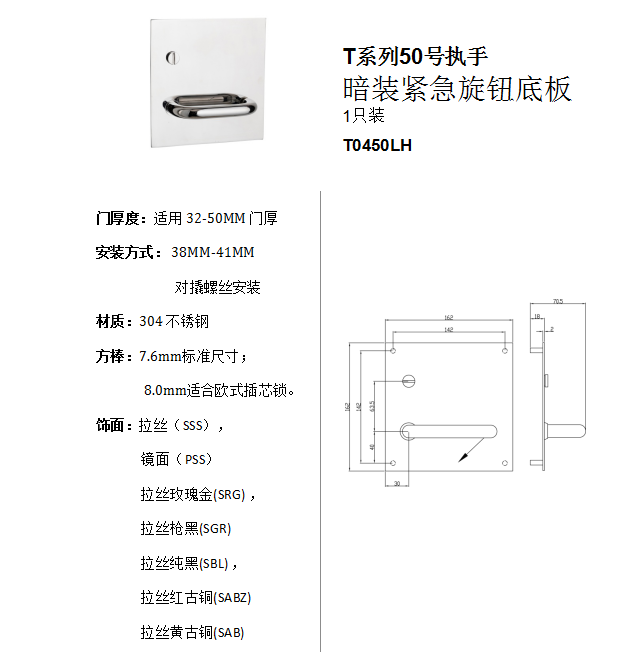 T系列50號執手 暗裝告急旋鈕底板