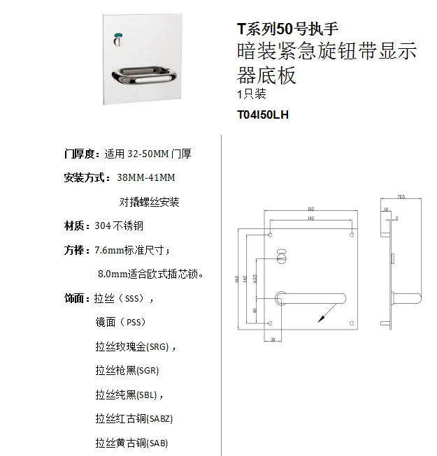 T系列50號執手 暗裝告急旋鈕帶顯現器底板