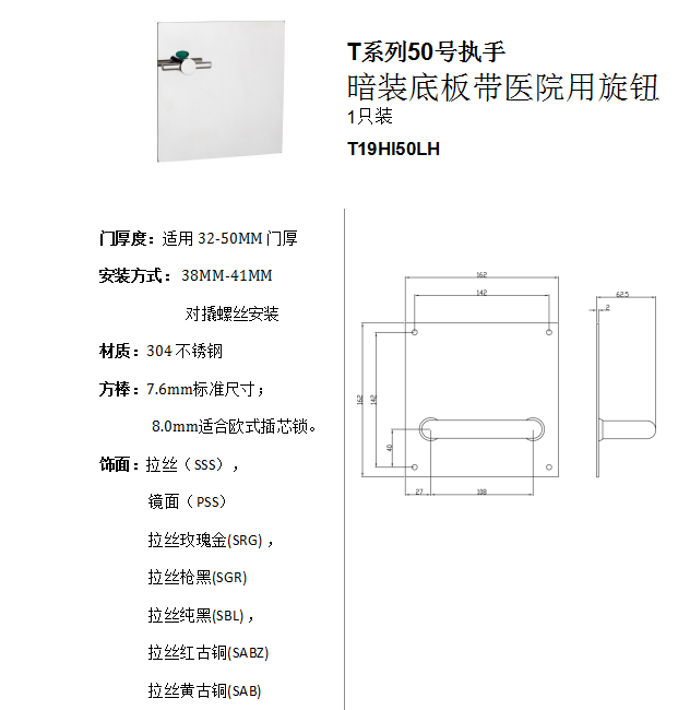 > T全系列50號執手 暗裝底板患病院用旋紐