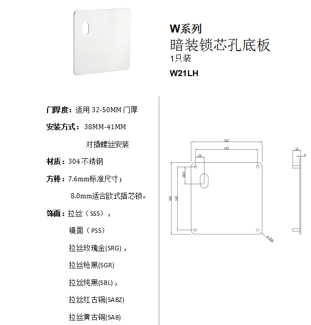 > W系列作品 暗裝防盜鎖芯孔底板