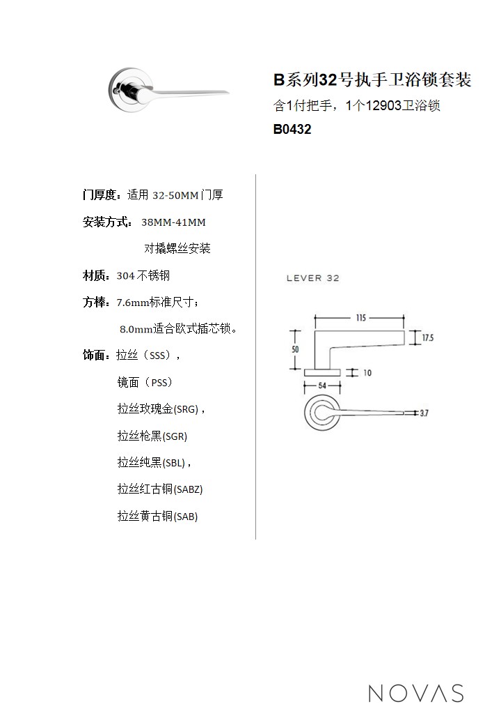 B系列32號執手衛浴鎖套裝