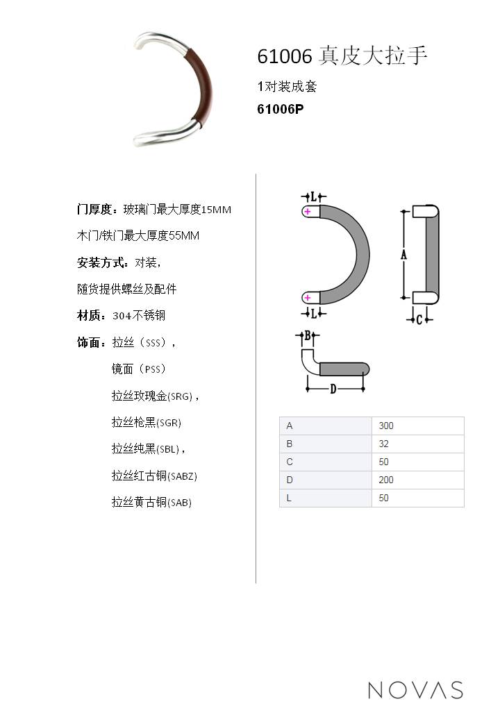 > 61006 真.皮大門拉手