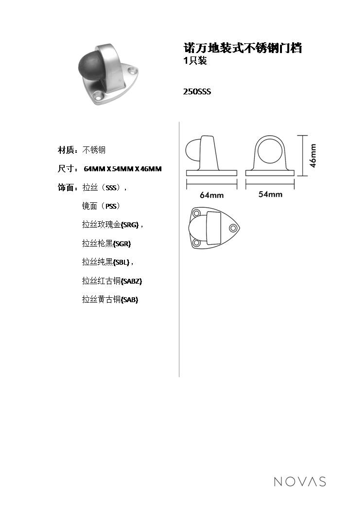 諾萬地裝式不銹鋼門檔墊塊20mm