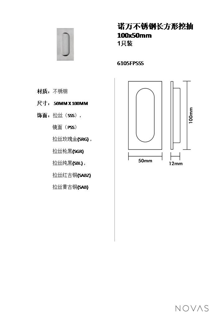 諾萬304不銹鋼長四方形挖抽 100x50mm