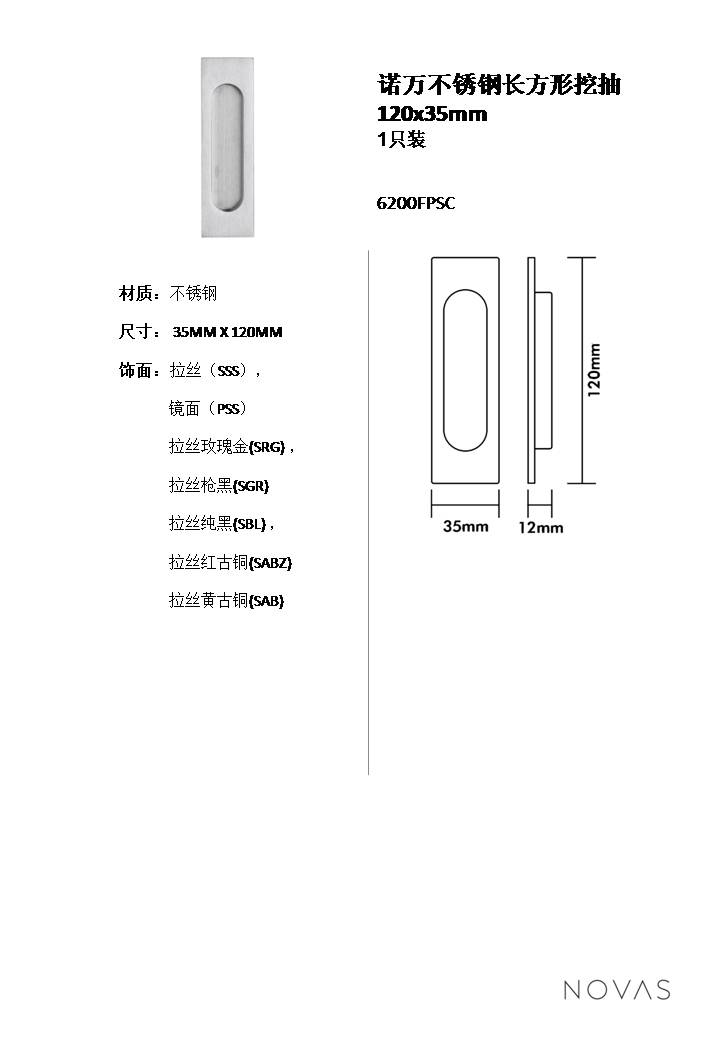 諾萬304不銹鋼長四方形挖抽 120x35mm