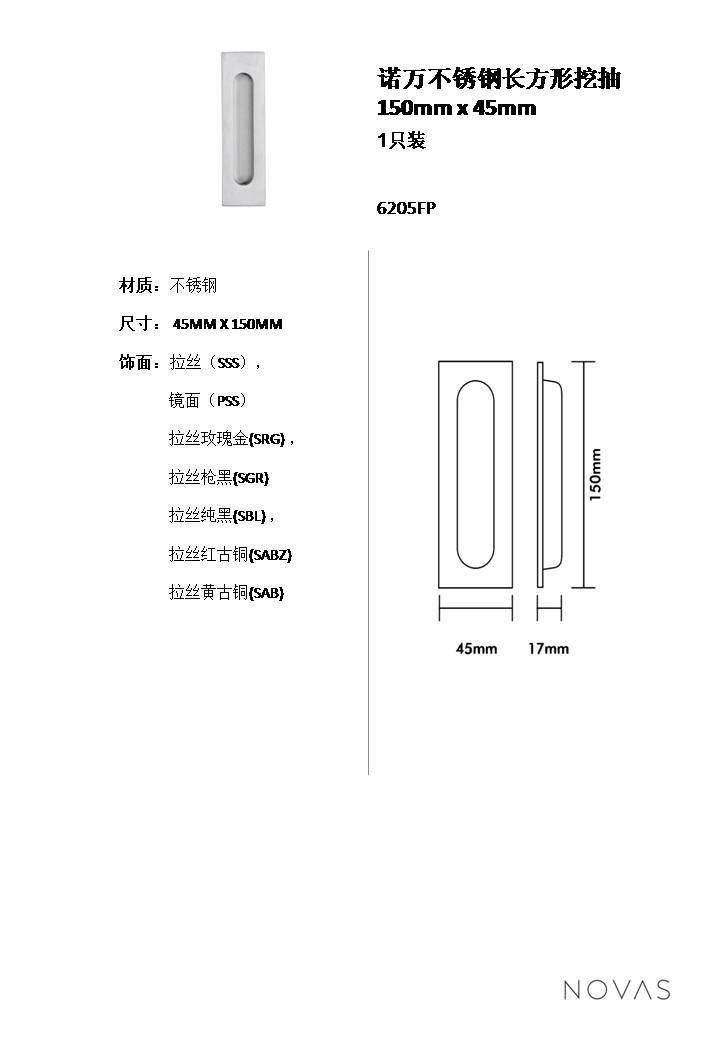 諾萬不銹鋼長方形挖抽 150mm x 45mm