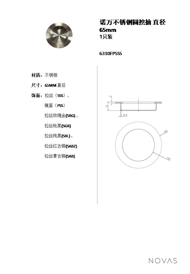諾萬不銹鋼裝飾管圓挖抽 內直徑65mm