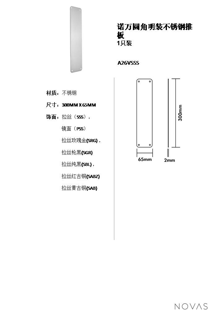 諾萬園角明裝不透鋼推板